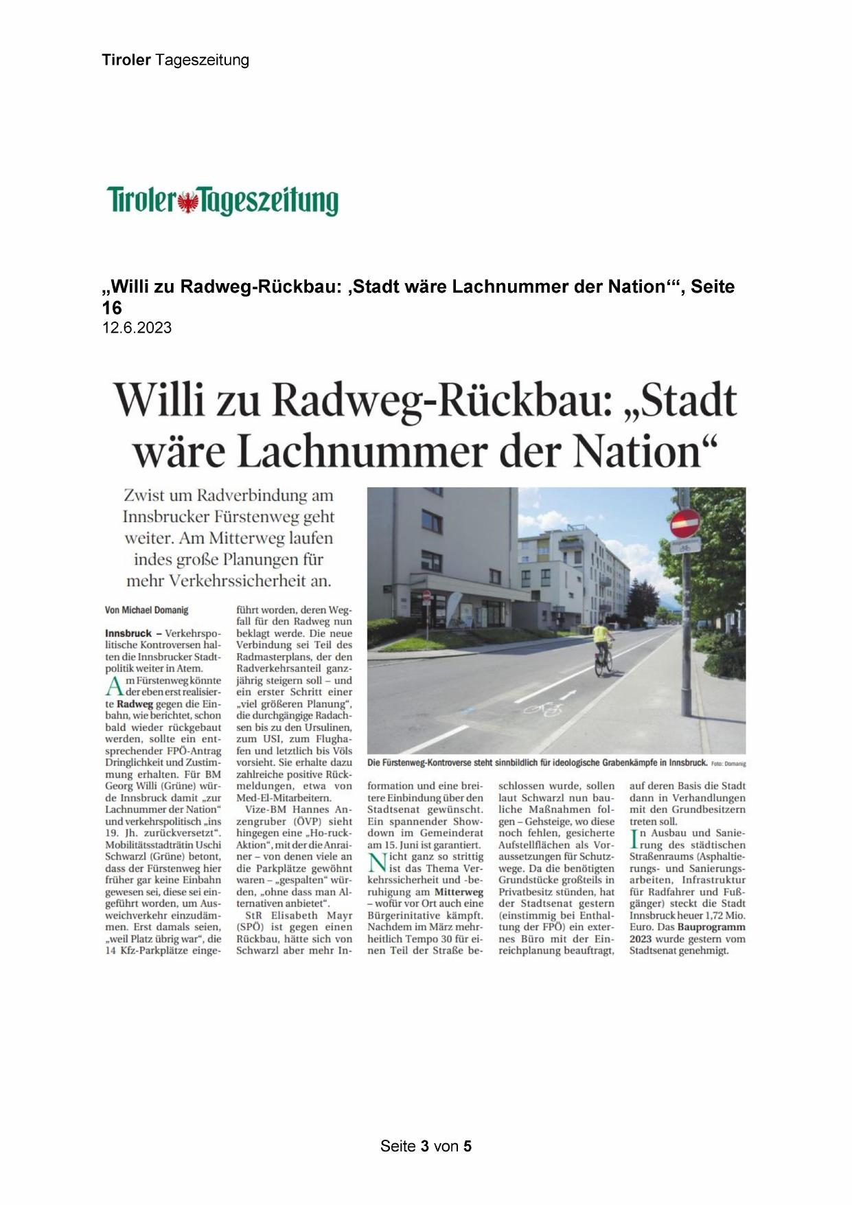 „Willi zu Radweg-Rückbau: ‚Stadt wäre Lachnummer der Nation‘“, Seite