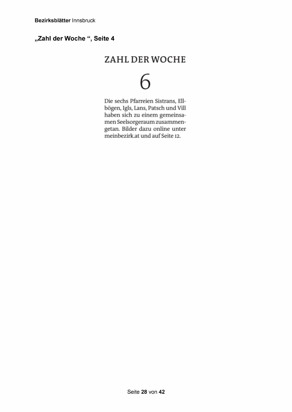 Die sechs Pfarreien Sistrans, Ellbögen, Igls, Lans, Patsch und Vill