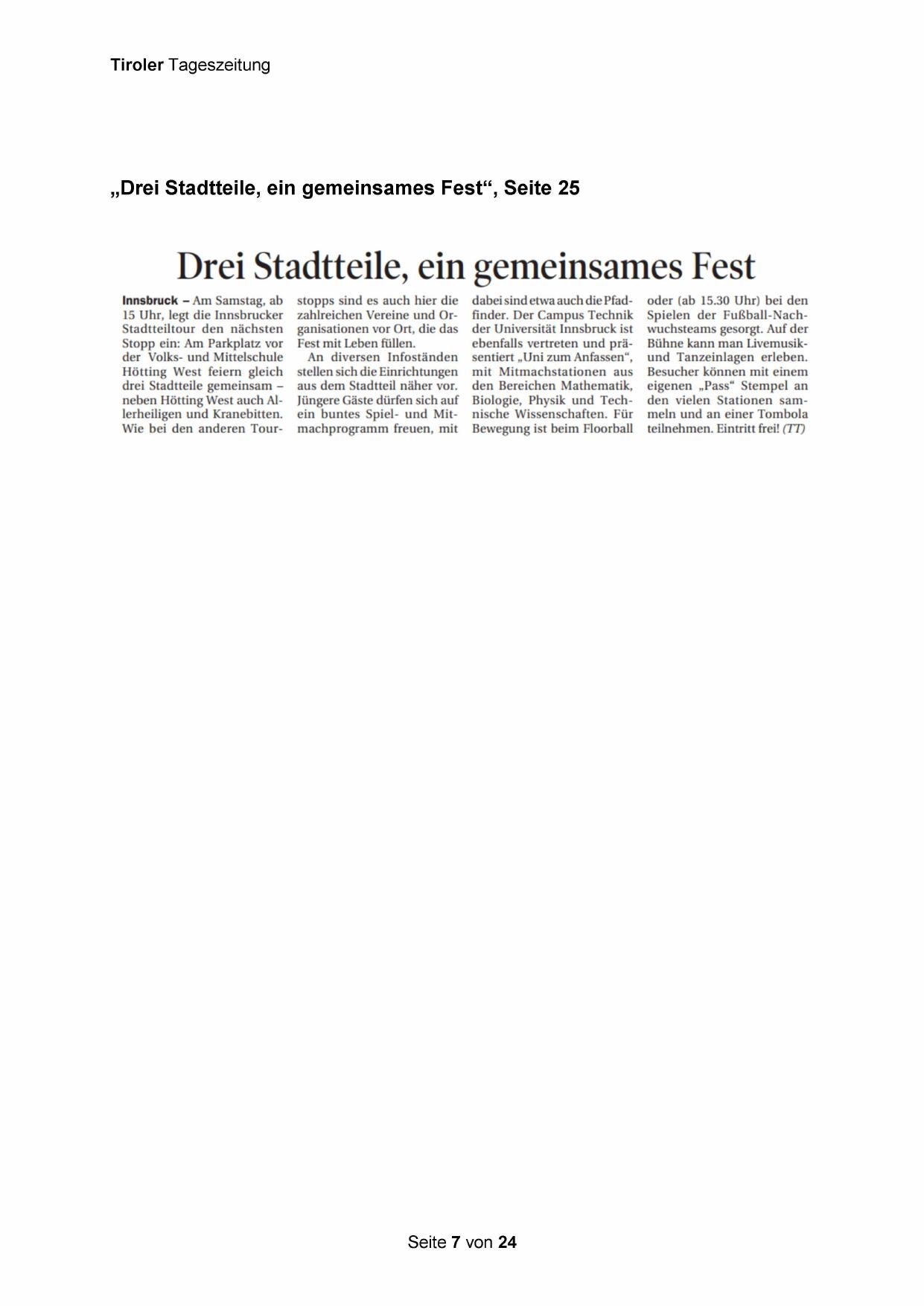 neben Hötting West auch Allerheiligen und Kranebitten.