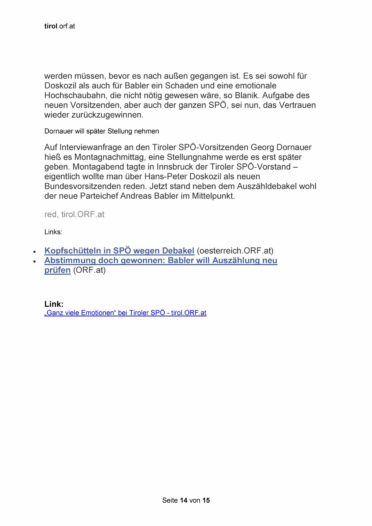 Auf Interviewanfrage an den Tiroler SPÖ-Vorsitzenden Georg Dornauer