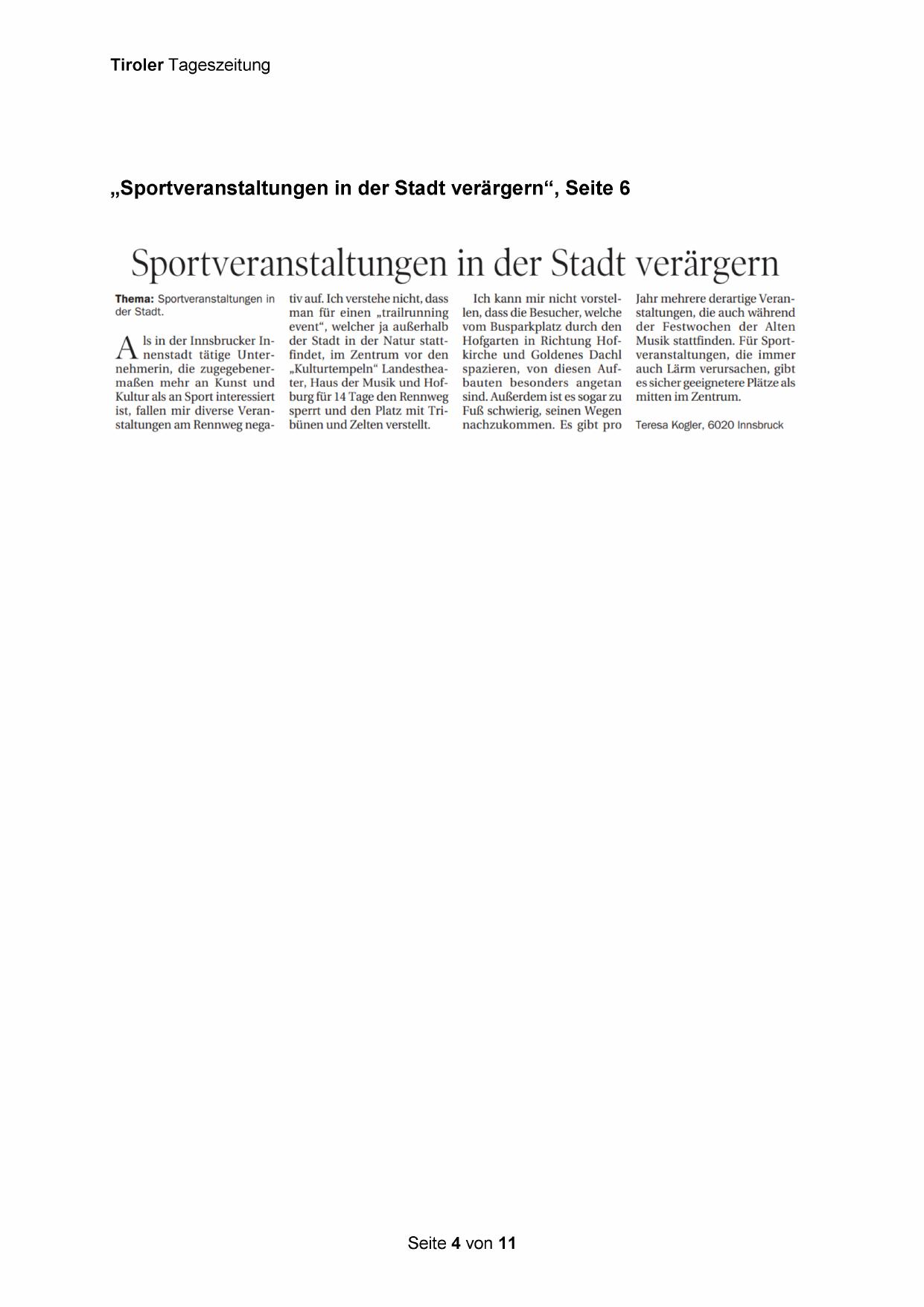 „Sportveranstaltungen in der Stadt verärgern“, Seite 6