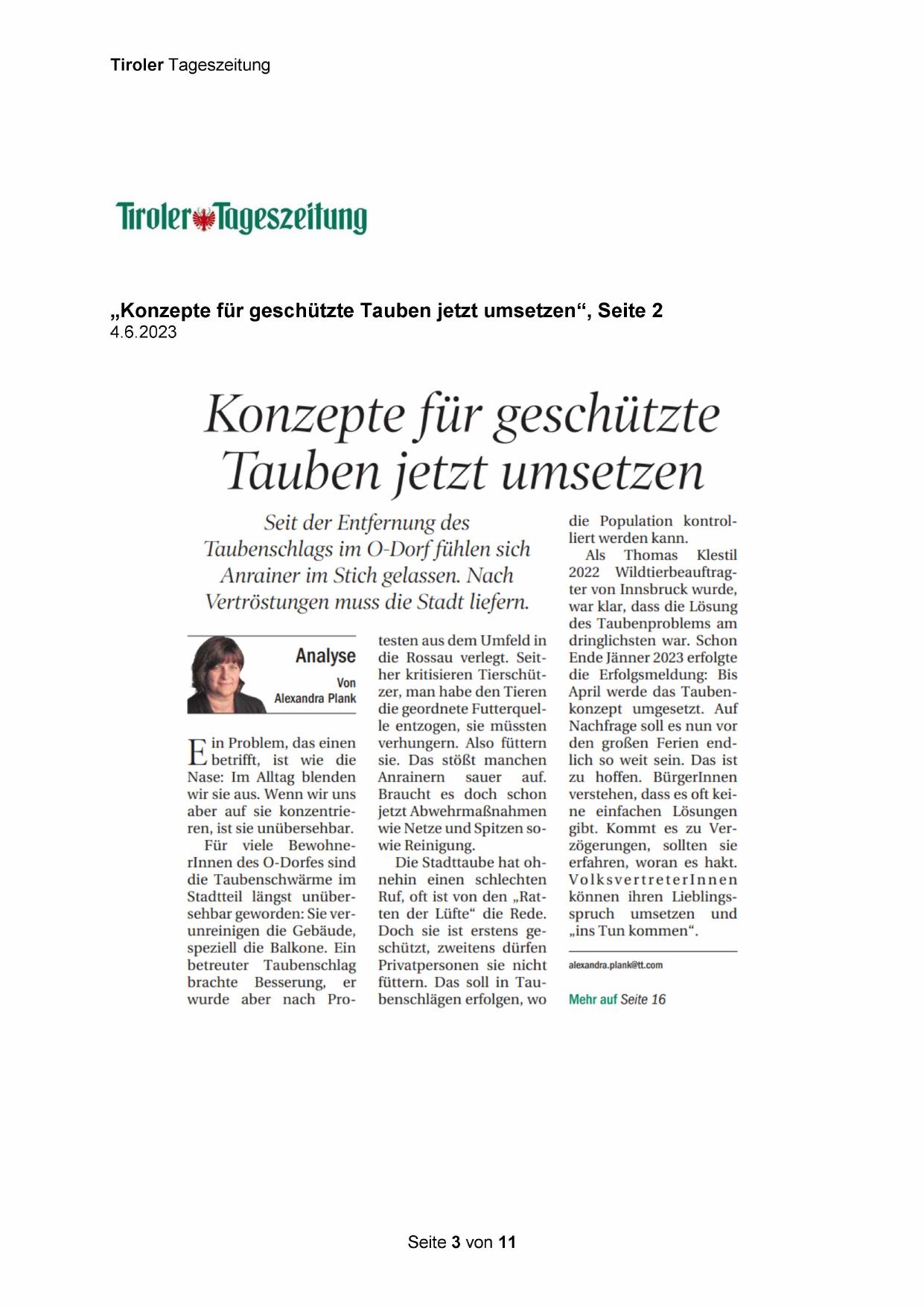 „Konzepte für geschützte Tauben jetzt umsetzen“, Seite 2