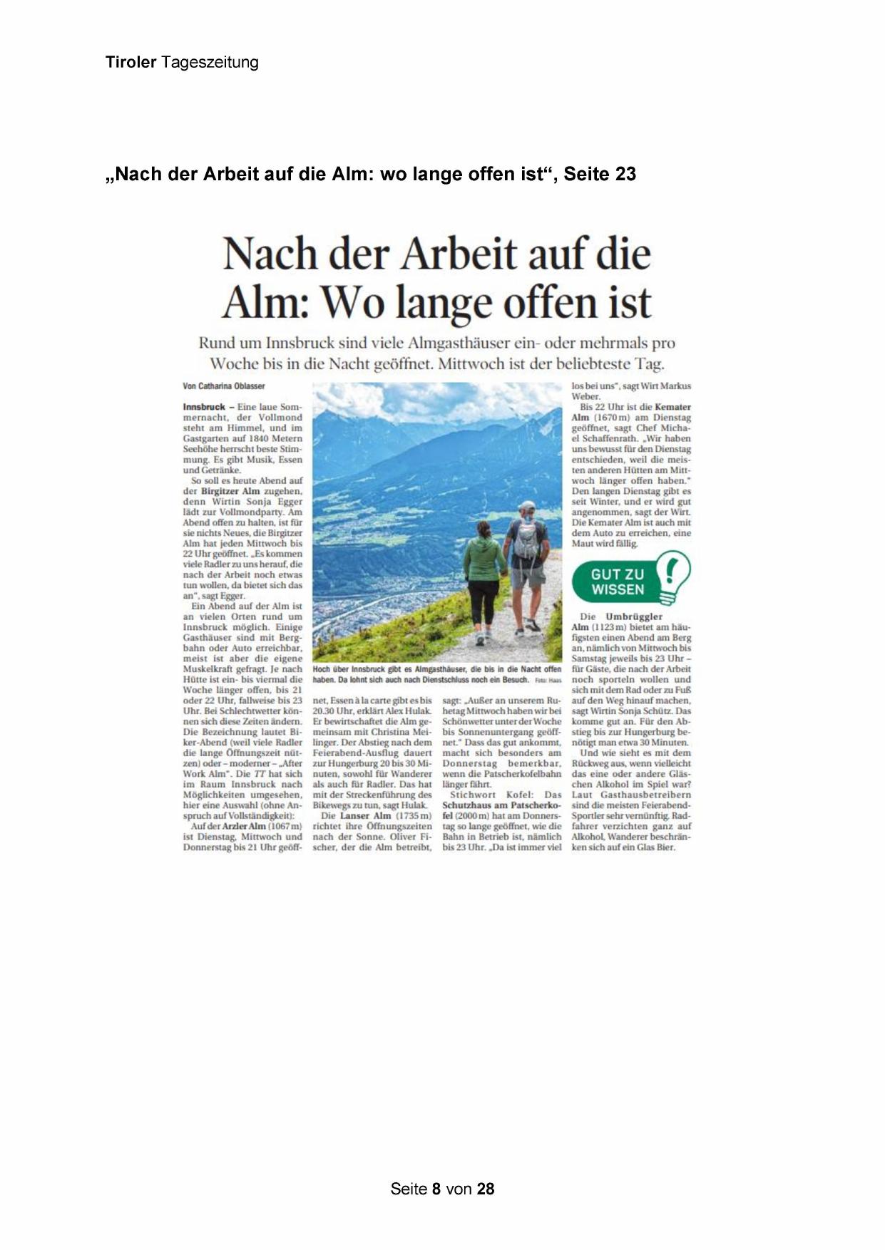 „Nach der Arbeit auf die Alm: wo lange offen ist‘“, Seite 23