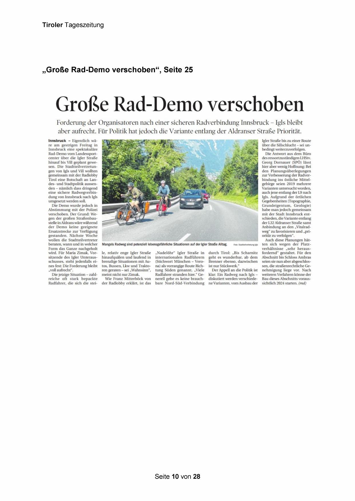 Rad-Demo vom Landessportcenter über die Igler Straße