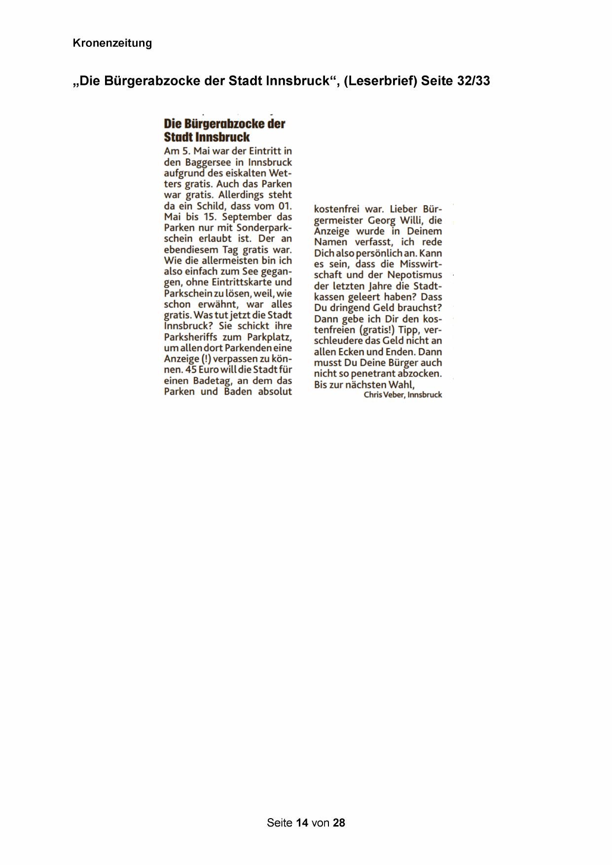 „Die Bürgerabzocke der Stadt Innsbruck“, (Leserbrief) Seite 32/33