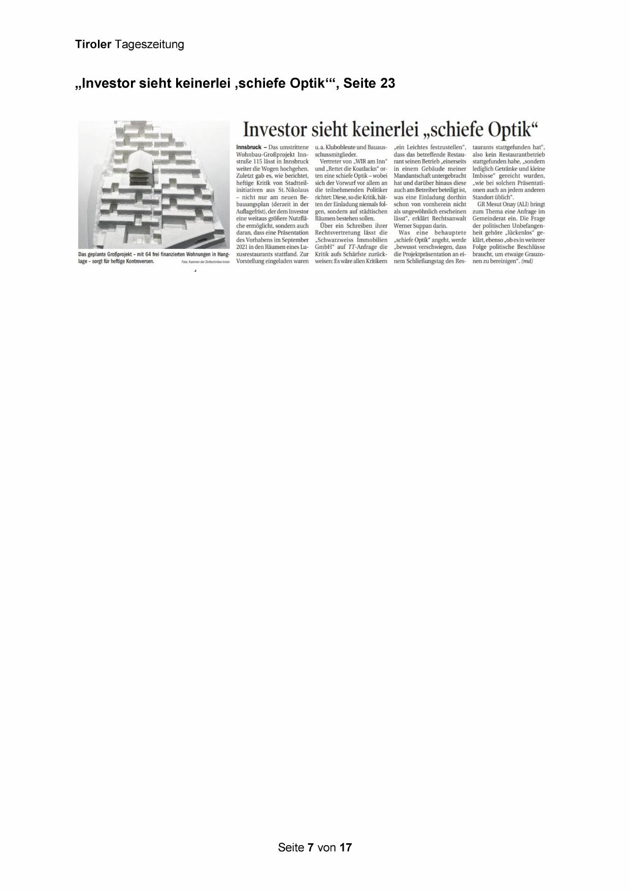 Wohnbau-Großprojekt Innstraße 115 lässt in Innsbruck