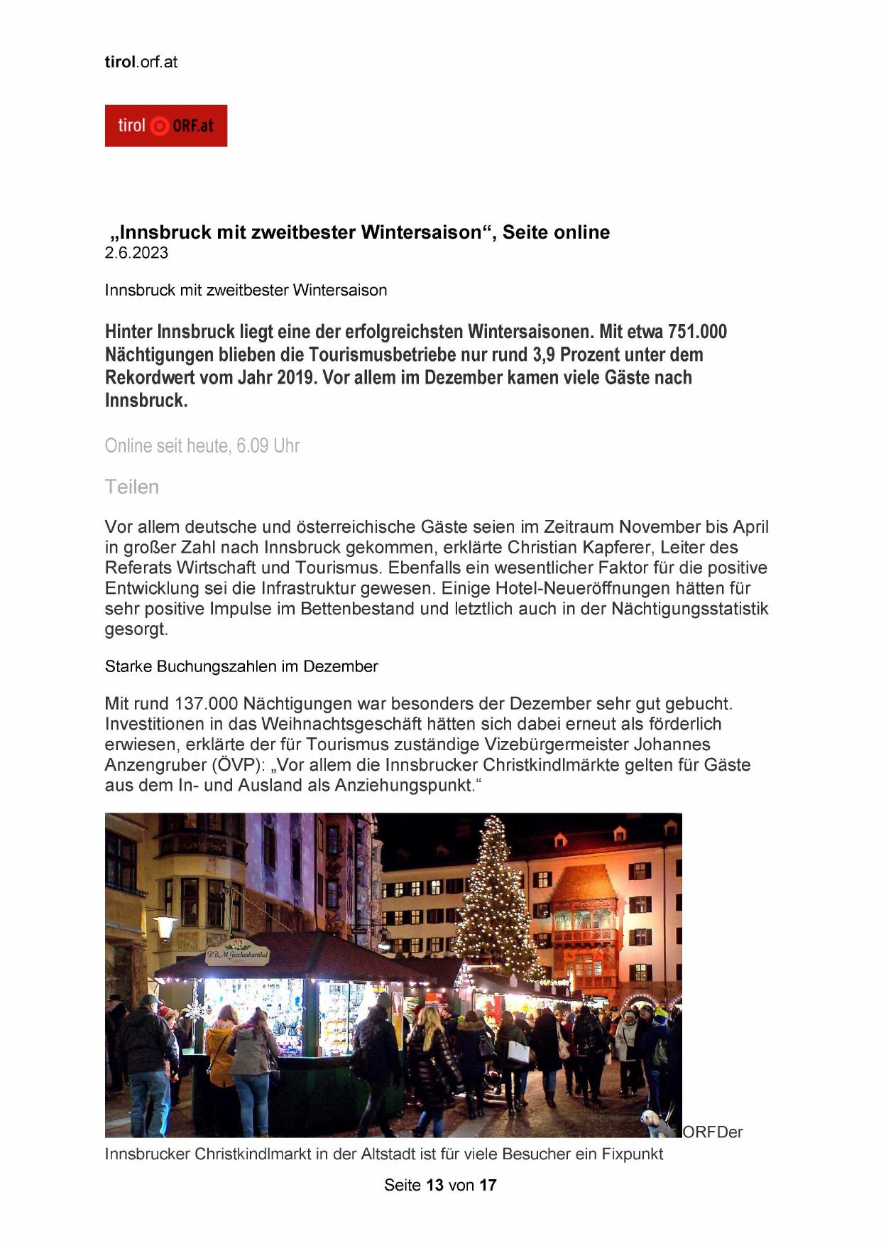 „Innsbruck mit zweitbester Wintersaison“, Seite online