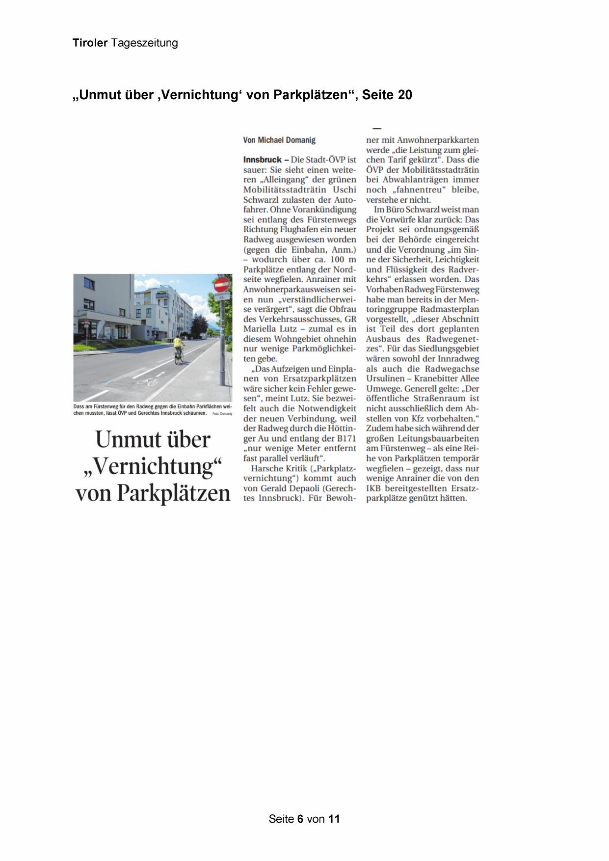 „Unmut über ‚Vernichtung‘ von Parkplätzen“, Seite 20