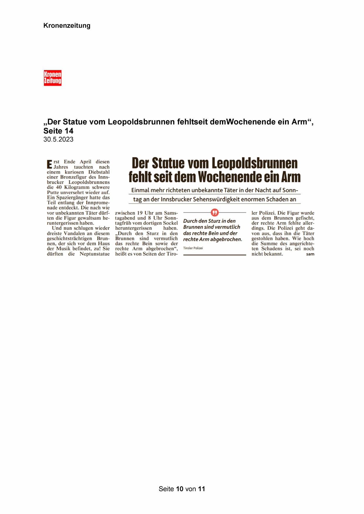 „Der Statue vom Leopoldsbrunnen fehltseit demWochenende ein Arm“,