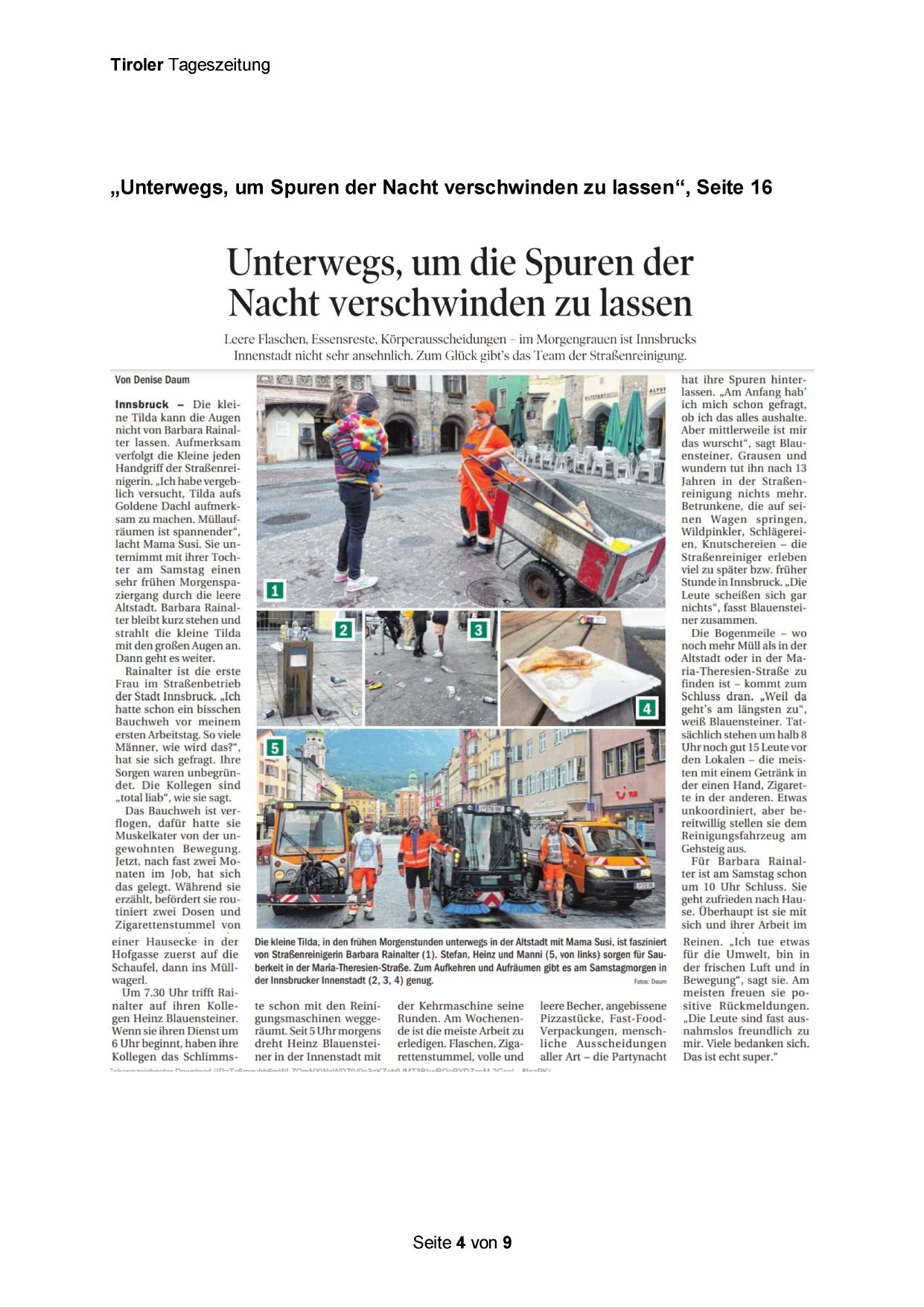 Leere Flaschen, Essensreste, Körperausscheidungen - im Morgengrauen ist Innsbrucks