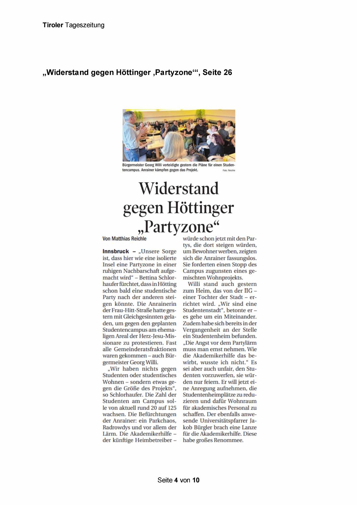 „Widerstand gegen Höttinger ‚Partyzone‘“, Seite 26