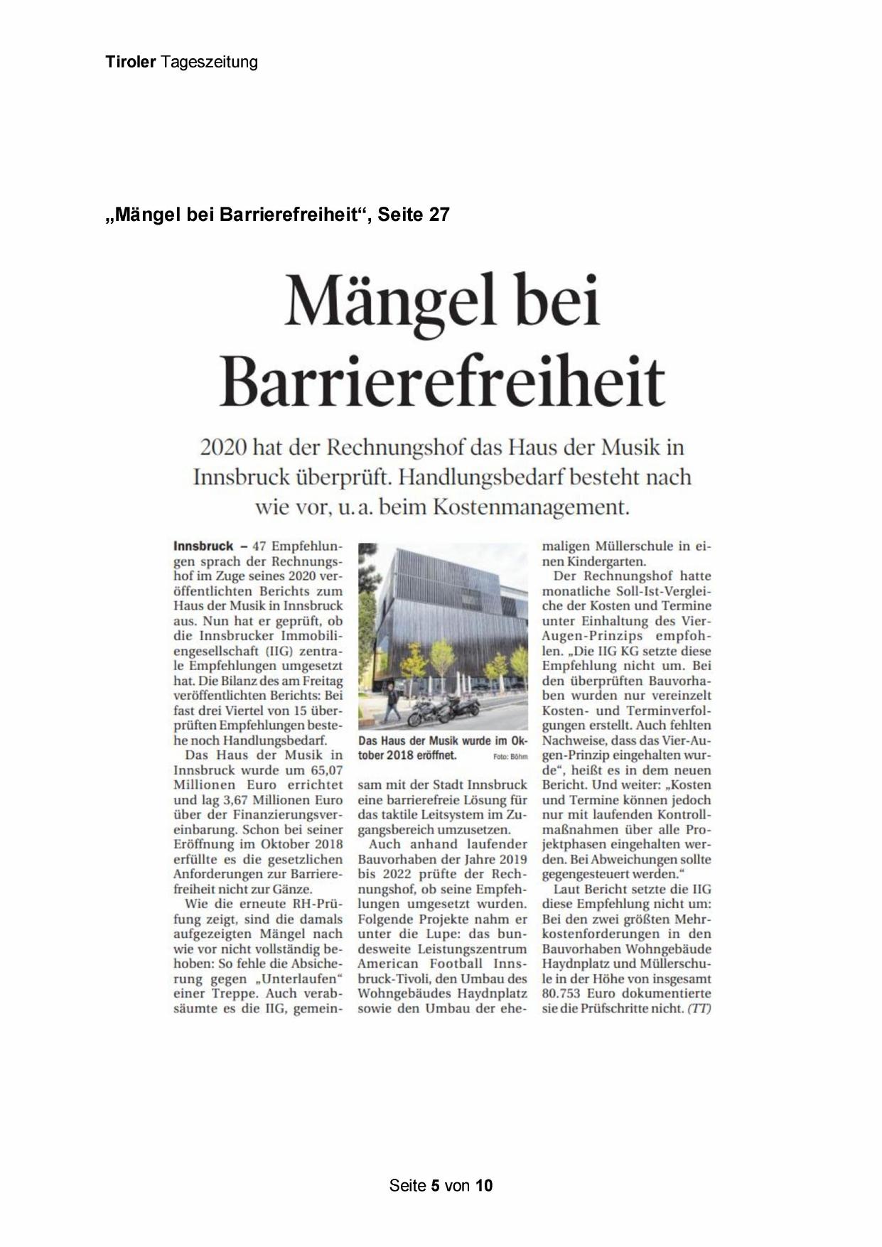 Innsbruck - 47 Empfehlungen sprach der Rechnungshof im Zuge seines 2020 veröffentlichten Berichts zum