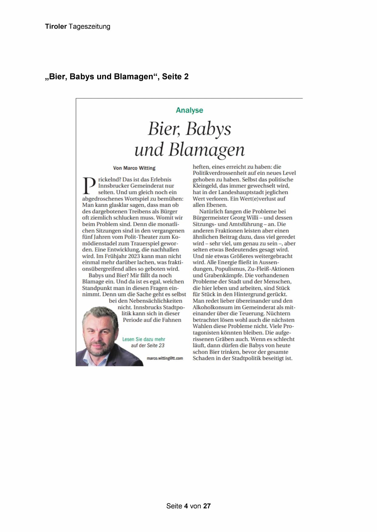 nicht. Innsbrucks Stadtpolitik kann sich in dieser