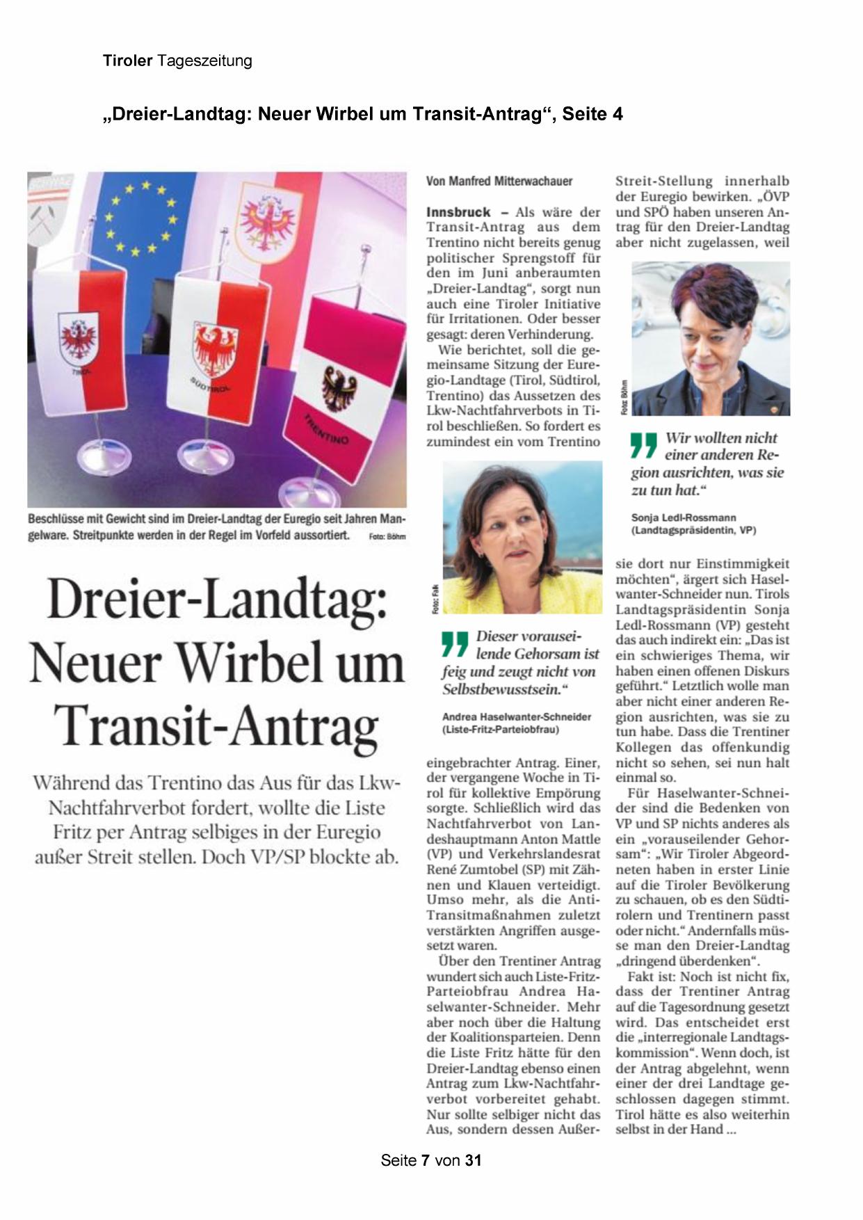 „Dreier-Landtag: Neuer Wirbel um Transit-Antrag“, Seite 4
