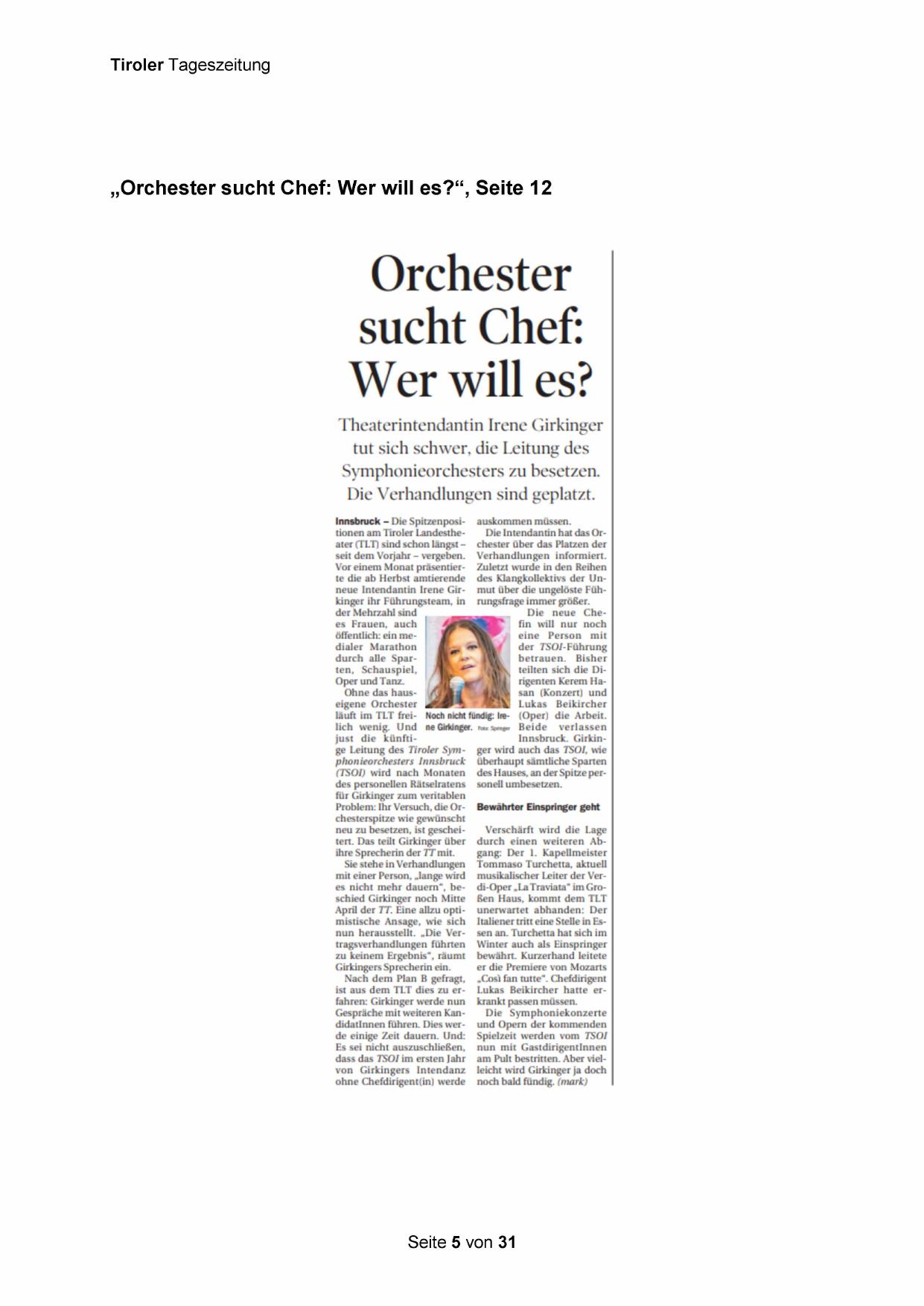 ist aus dem TLT dies zu erfahren: Girkinger werde nun