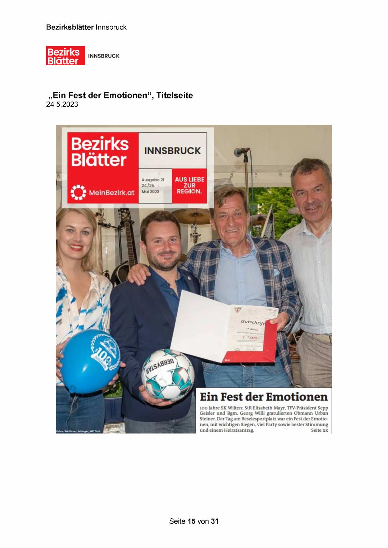100 Jahre SK Wilten: StR Elisabeth Mayr, TFV-Präsident Sepp