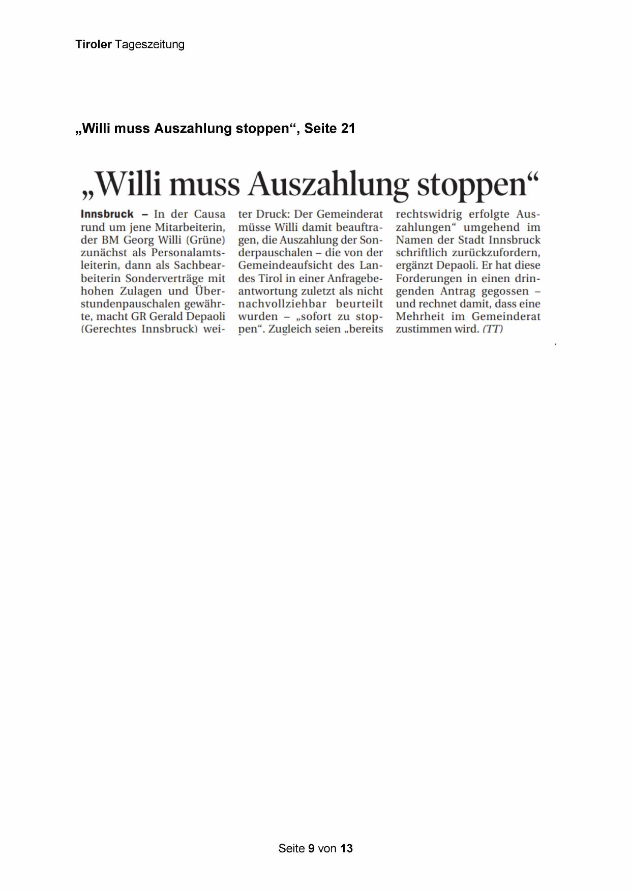 hohen Zulagen und Überstundenpauschalen gewährte, macht GR Gerald Depaoli