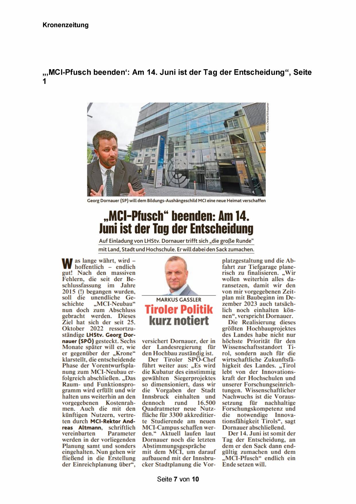 MCI-Campus schaffen werden.“ Aktuell laufen laut