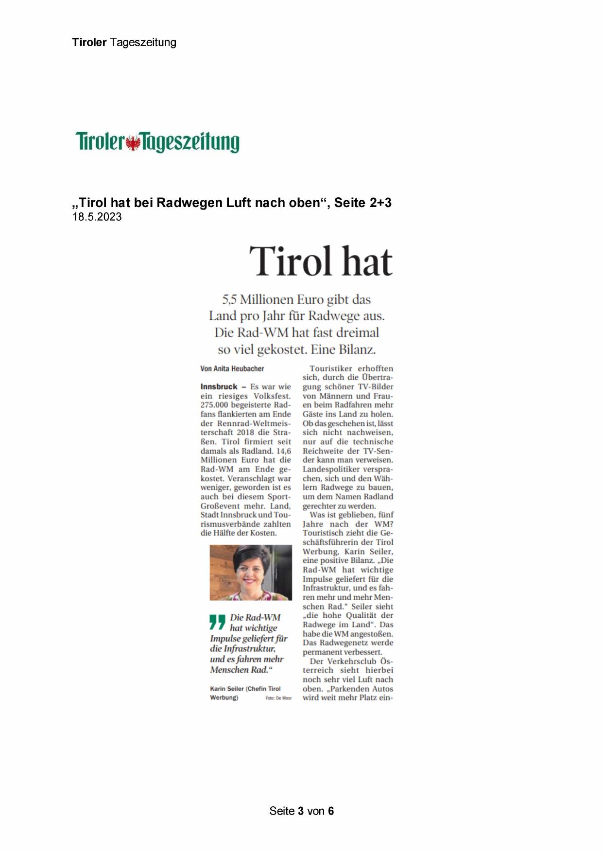 „Tirol hat bei Radwegen Luft nach oben“, Seite 2+3