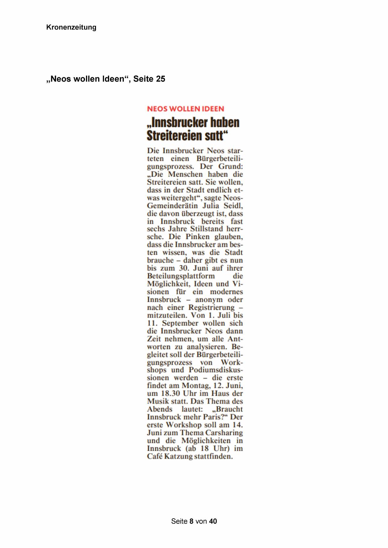 Die Innsbrucker Neos starteten einen Bürgerbeteiligungsprozess. Der Grund: