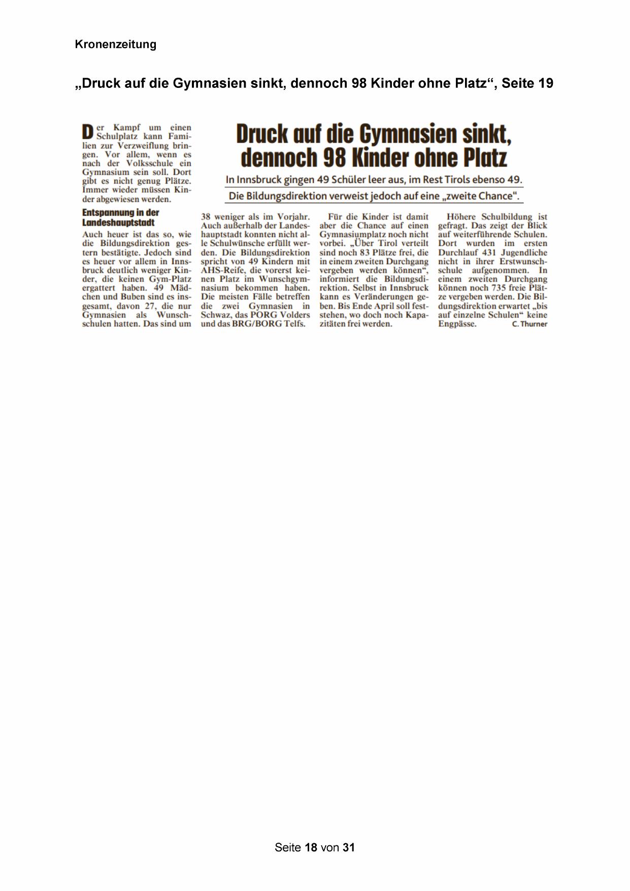 „Druck auf die Gymnasien sinkt, dennoch 98 Kinder ohne Platz“, Seite 19