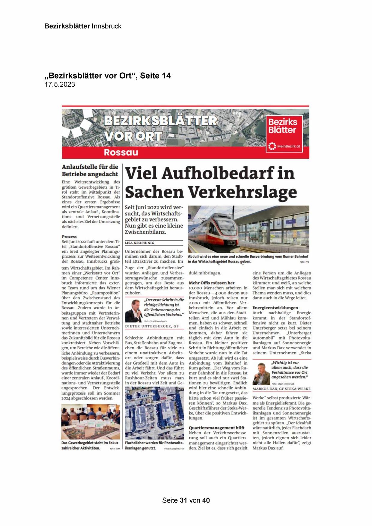 Rossau. Zudem wurde in Arbeitsgruppen mit Vertreterinnen und Vertretern der Verwaltung und stadtnaher Betriebe
