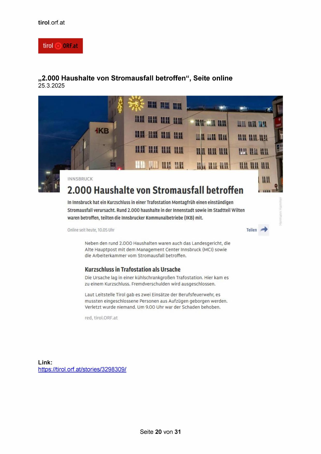 „2.000 Haushalte von Stromausfall betroffen“, Seite online