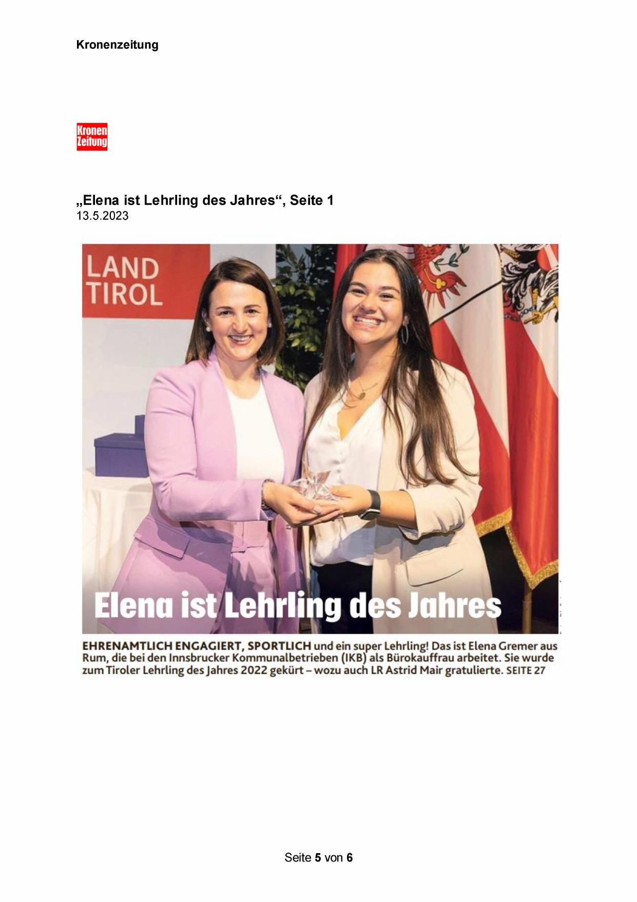 zum Tiroler Lehrling des Jahres 2022 gekürt - wozu auch LR Astrid Mair gratulierte. SEITE 27