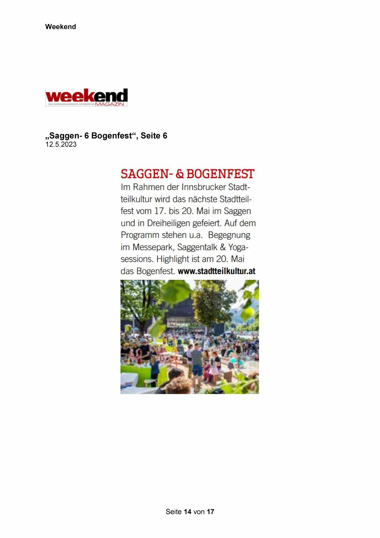Im Rahmen der Innsbrucker Stadtteilkultur wird das nächste Stadtteilfest vom 17. bis 20. Mai im Saggen