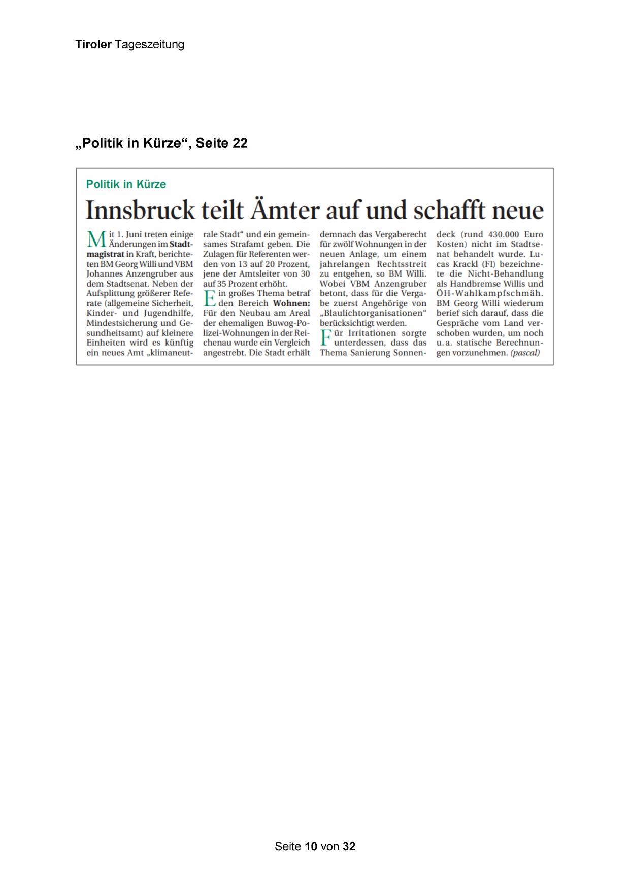 magistrat in Kraft, berichteten BM Georg Willi und VBM