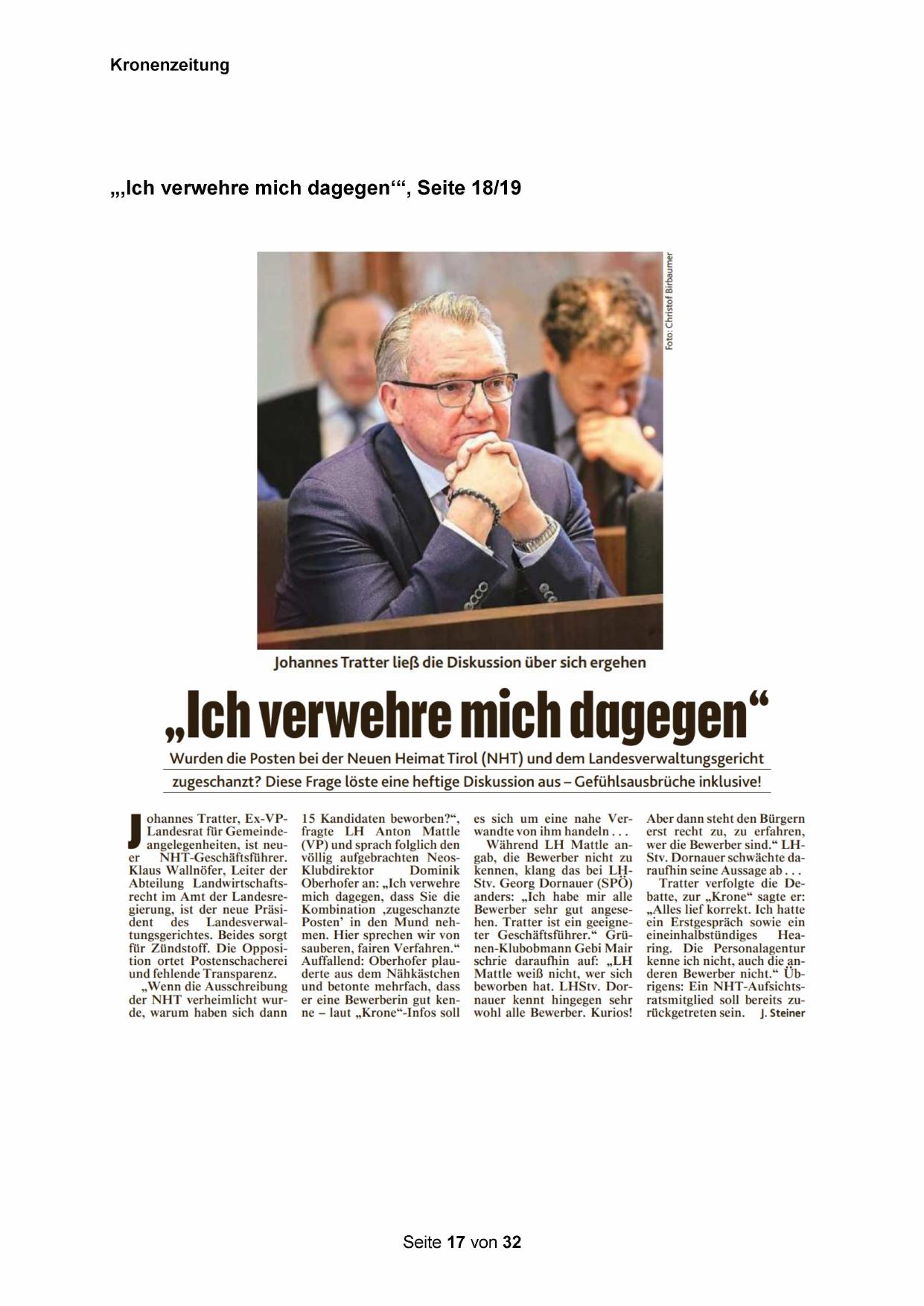 Bewerber sehr gut angesehen. Tratter ist ein geeigneter Geschäftsführer.“ Grünen-Klubobmann Gebi Mair
