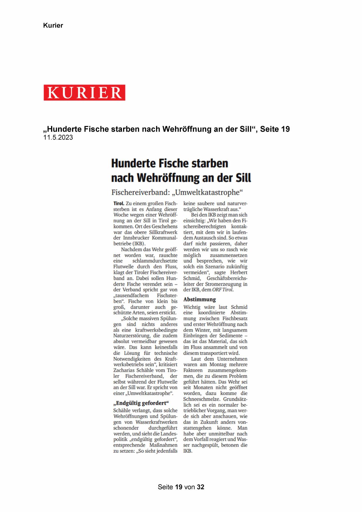 „Hunderte Fische starben nach Wehröffnung an der Sill“, Seite 19