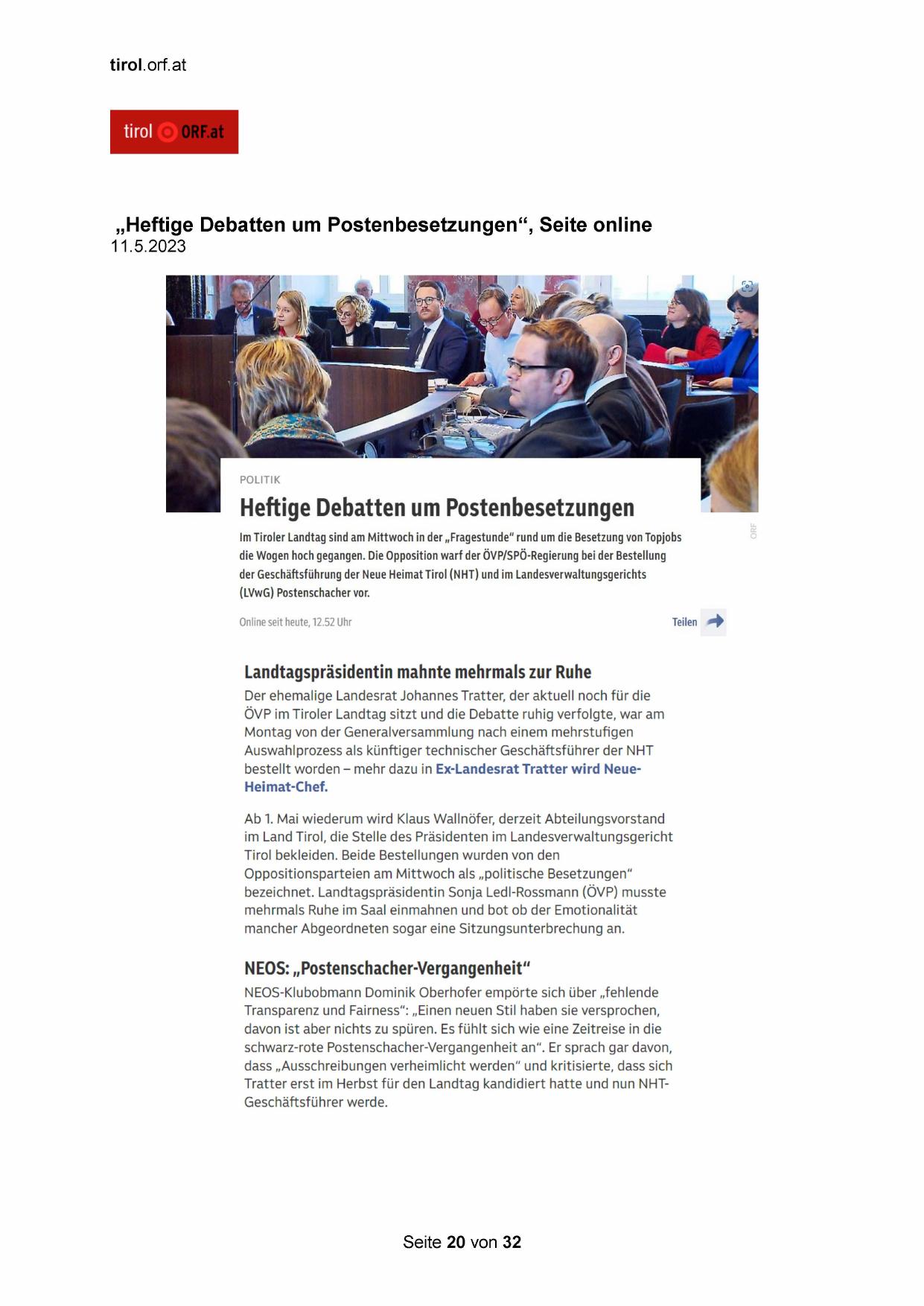 der Geschäftsführung der Neue Heimat Tirol (NHT) und im Landesverwaltungsgerichts
