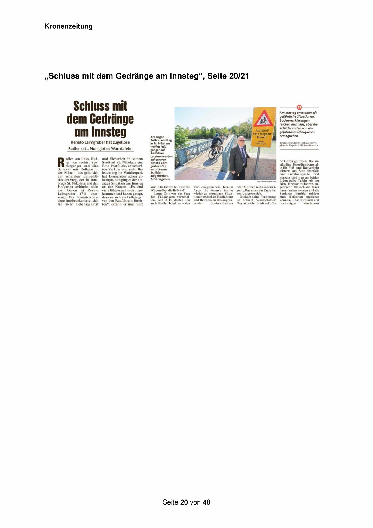 „Schluss mit dem Gedränge am Innsteg“, Seite 20/21