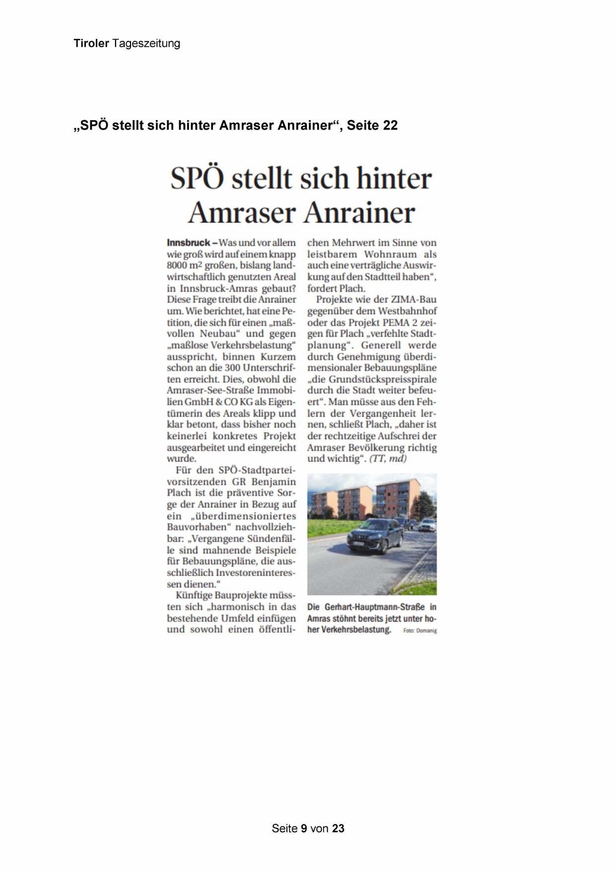 „SPÖ stellt sich hinter Amraser Anrainer“, Seite 22