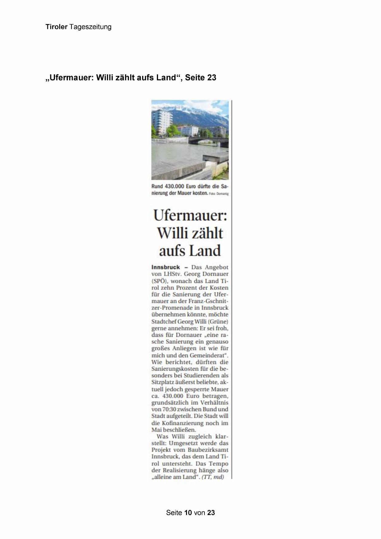 „Ufermauer: Willi zählt aufs Land“, Seite 23