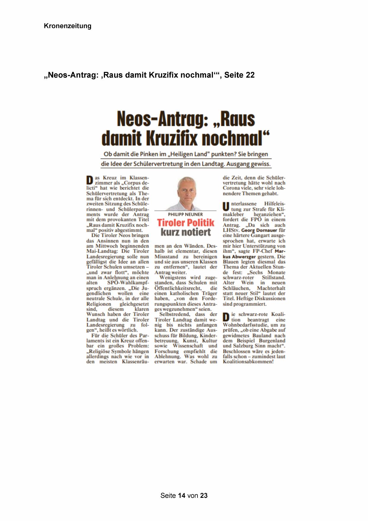 „Neos-Antrag: ‚Raus damit Kruzifix nochmal““, Seite 22