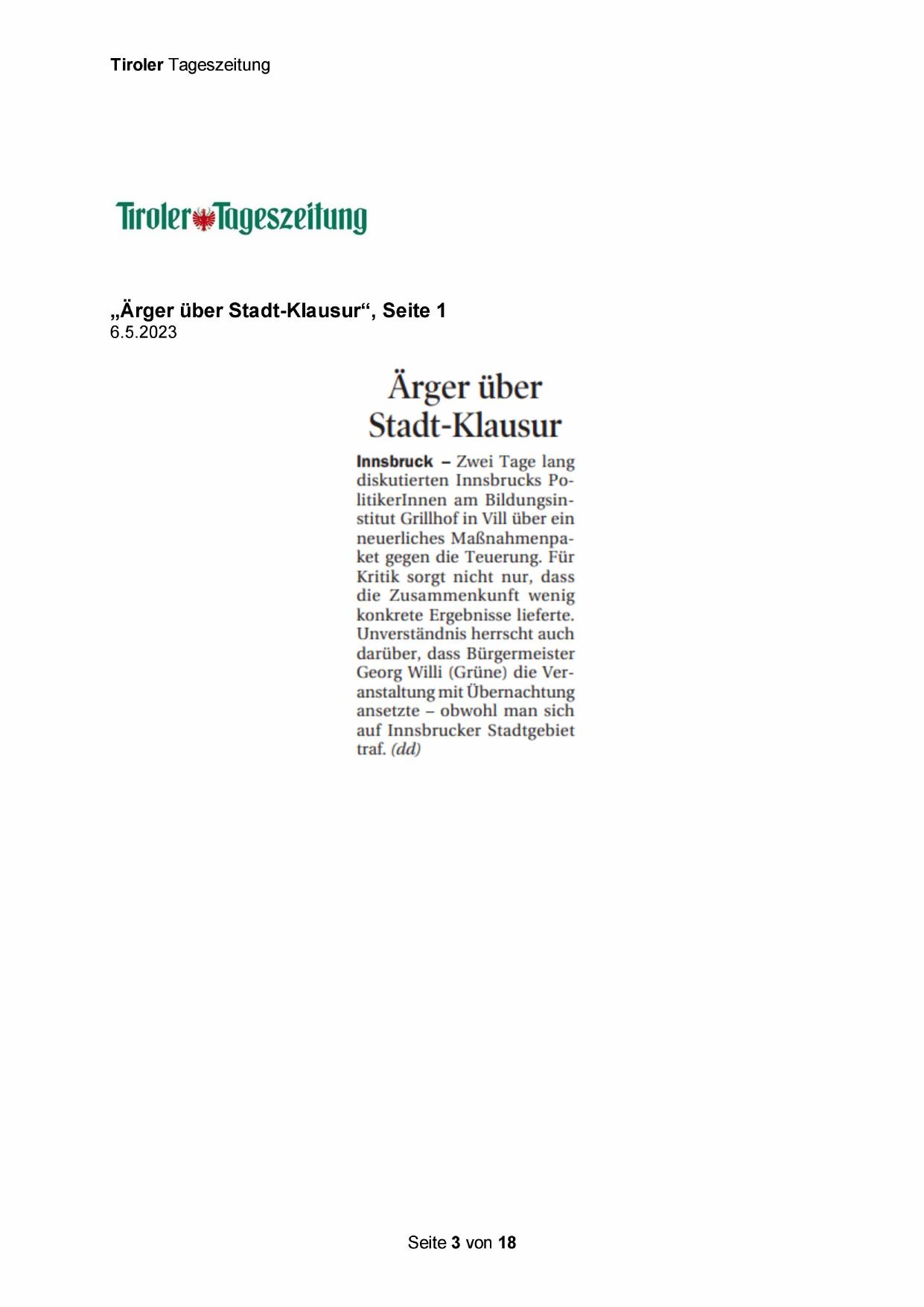 diskutierten Innsbrucks PolitikerInnen am Bildungsinstitut Grillhof in Vill über ein