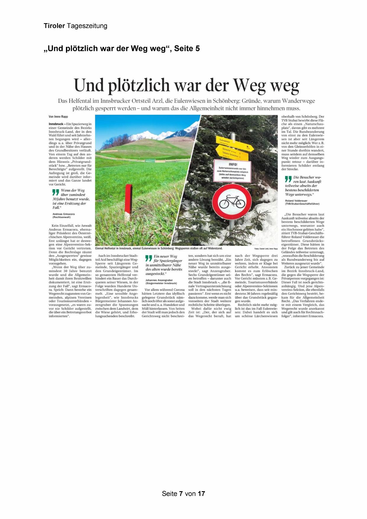 Das Helfental im Innsbrucker Ortsteil Arzl, die Eulenwiesen in Schönberg: Gründe, warum Wanderwege