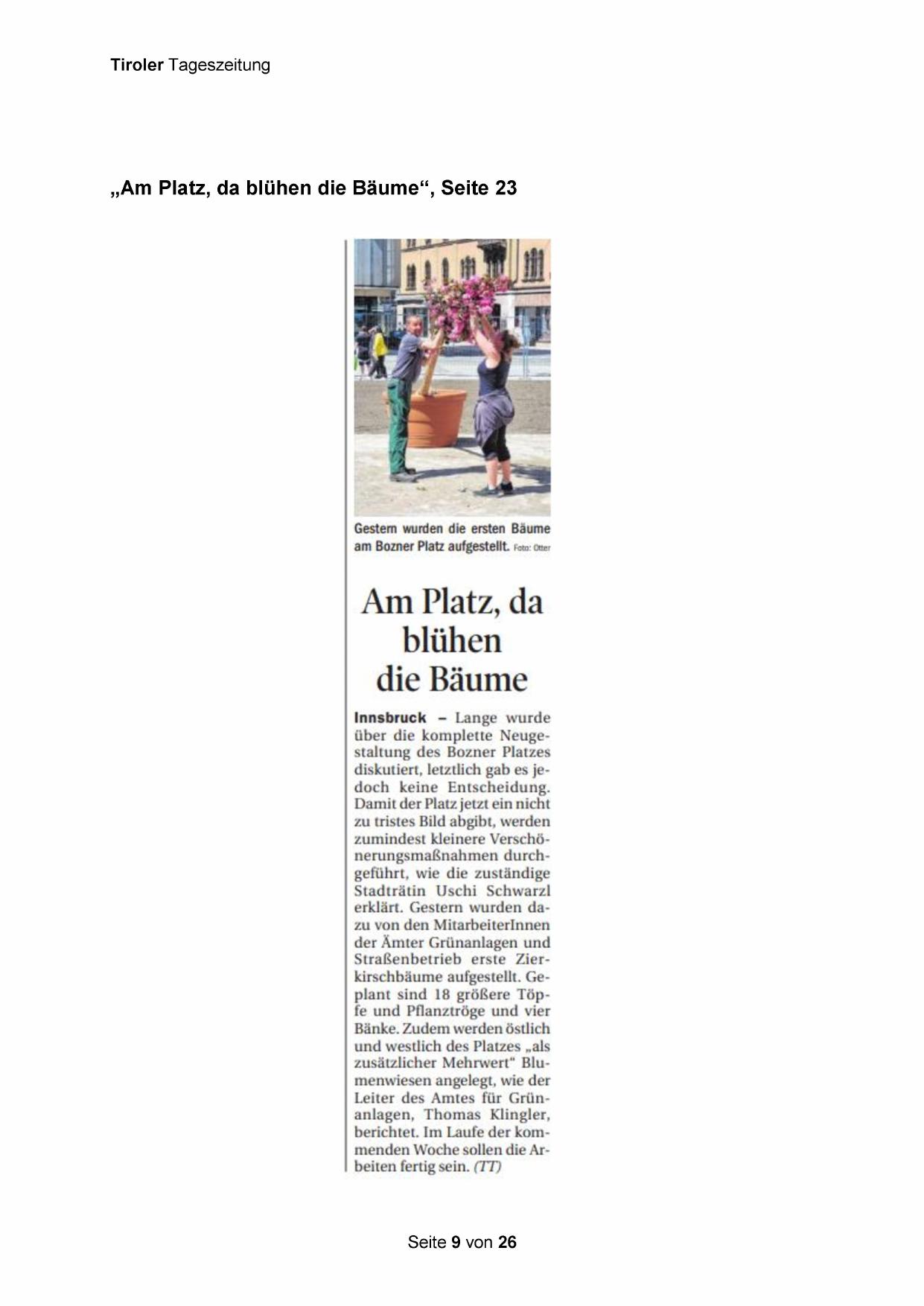 Straßenbetrieb erste Zierkirschbäume aufgestellt. Geplant sind 18 größere Töpfe und Pflanztröge und vier