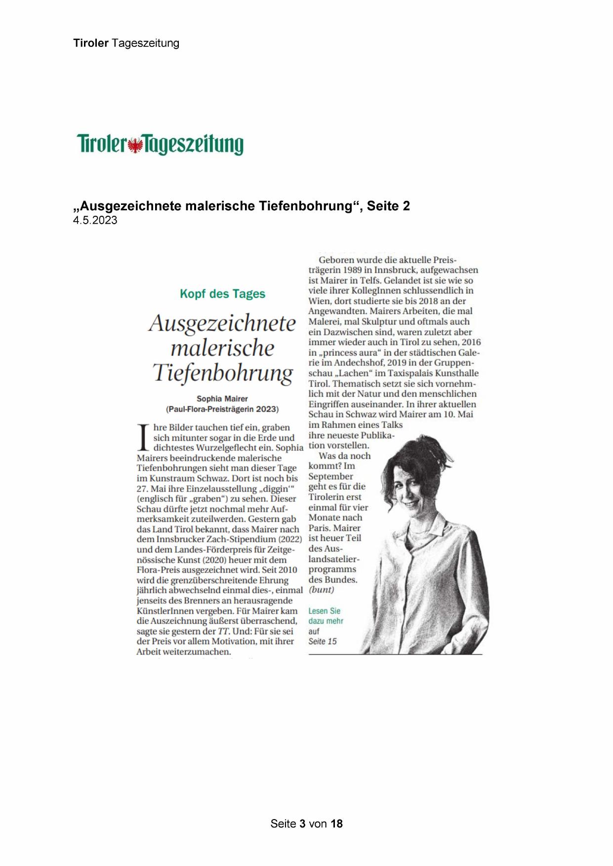 27. Mai ihre Einzelausstellung „diggin‘“ gehtes für die )