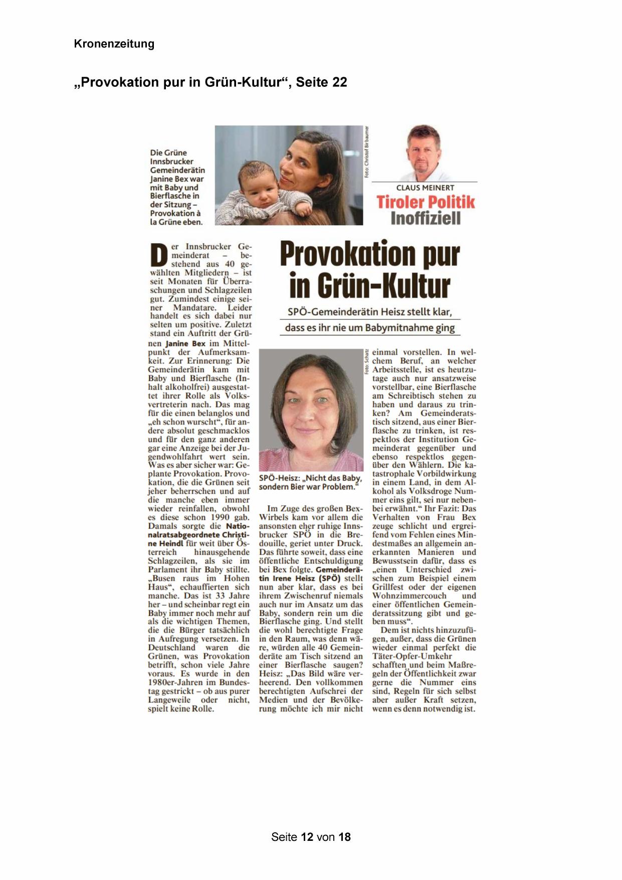 ansonsten eher ruhige Innsbrucker SPO in die Bredouille, geriet unter Druck.