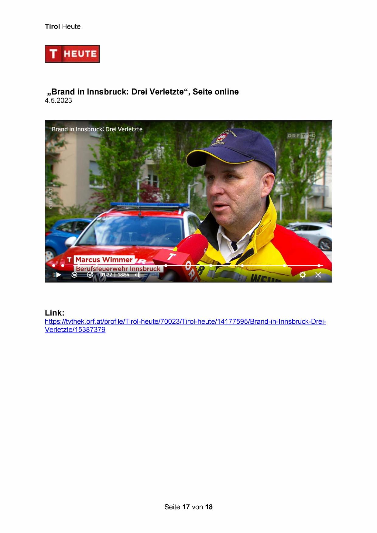 „Brand in Innsbruck: Drei Verletzte‘“, Seite online
