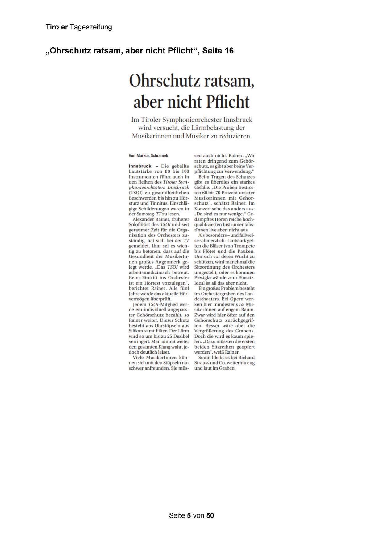 „Ohrschutz ratsam, aber nicht Pflicht‘, Seite 16