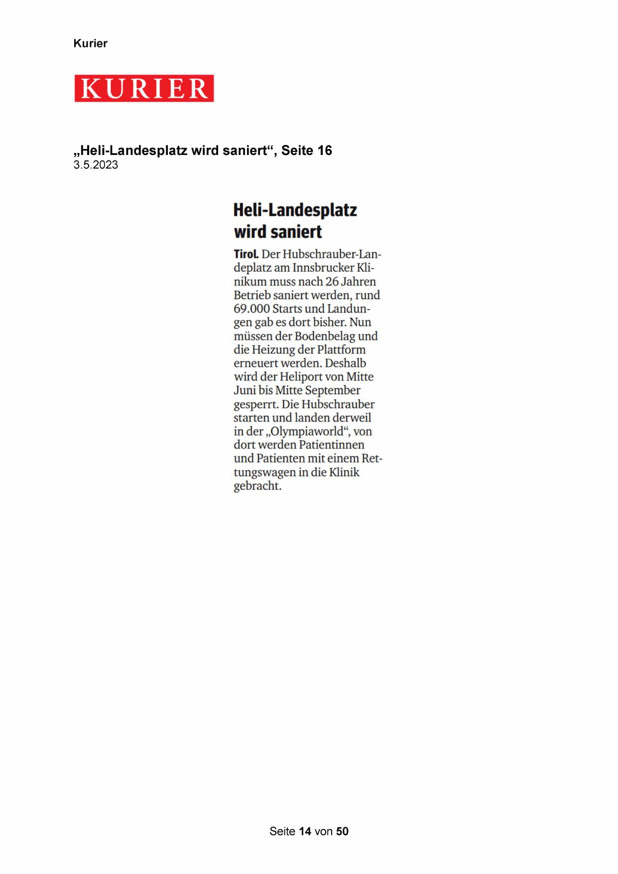 Tirol. Der Hubschrauber-Landeplatz am Innsbrucker Klinikum muss nach 26 Jahren