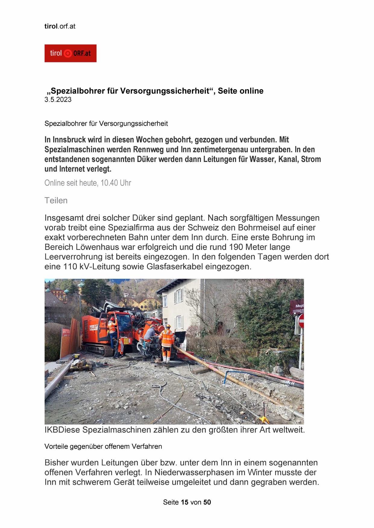 exakt vorberechneten Bahn unter dem Inn durch. Eine erste Bohrung im