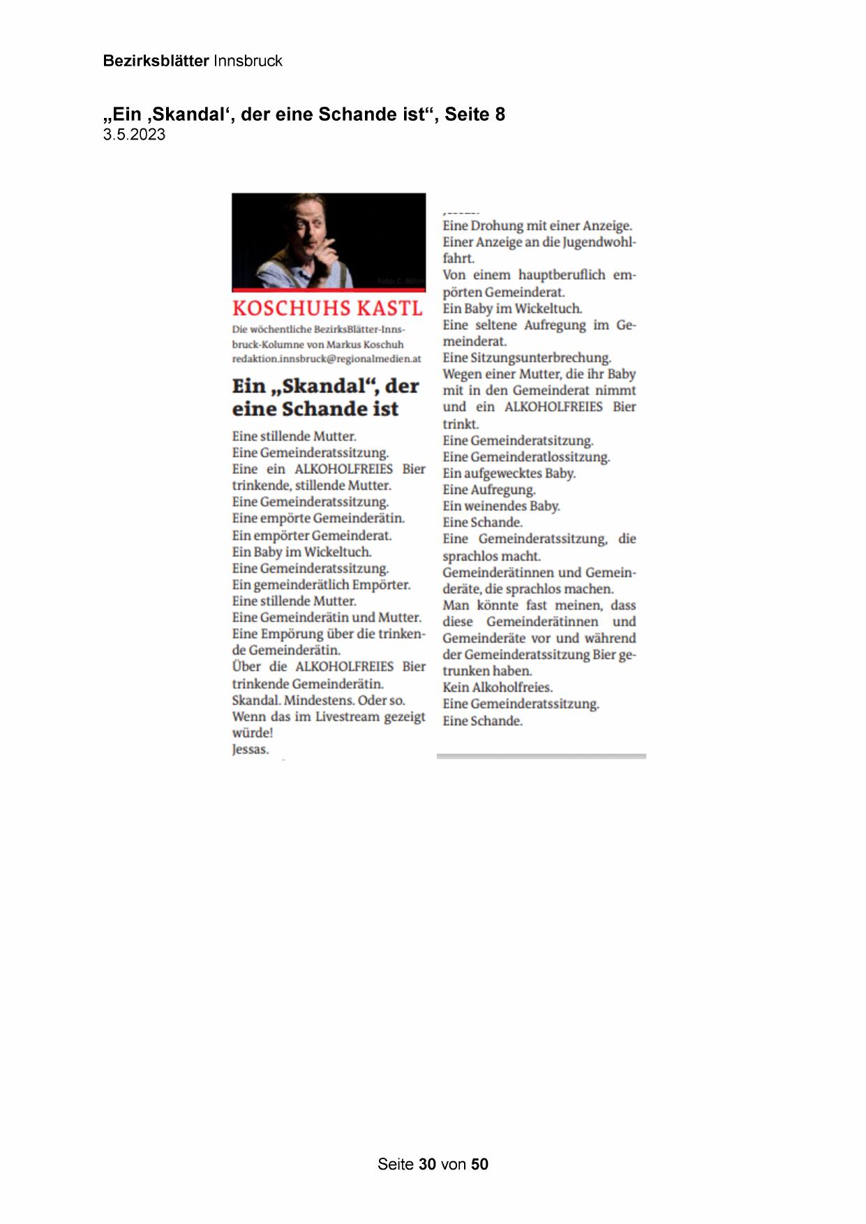 Die wöchentliche BezirksBlätter-Innsbruck-Kolumne von Markus Koschuh