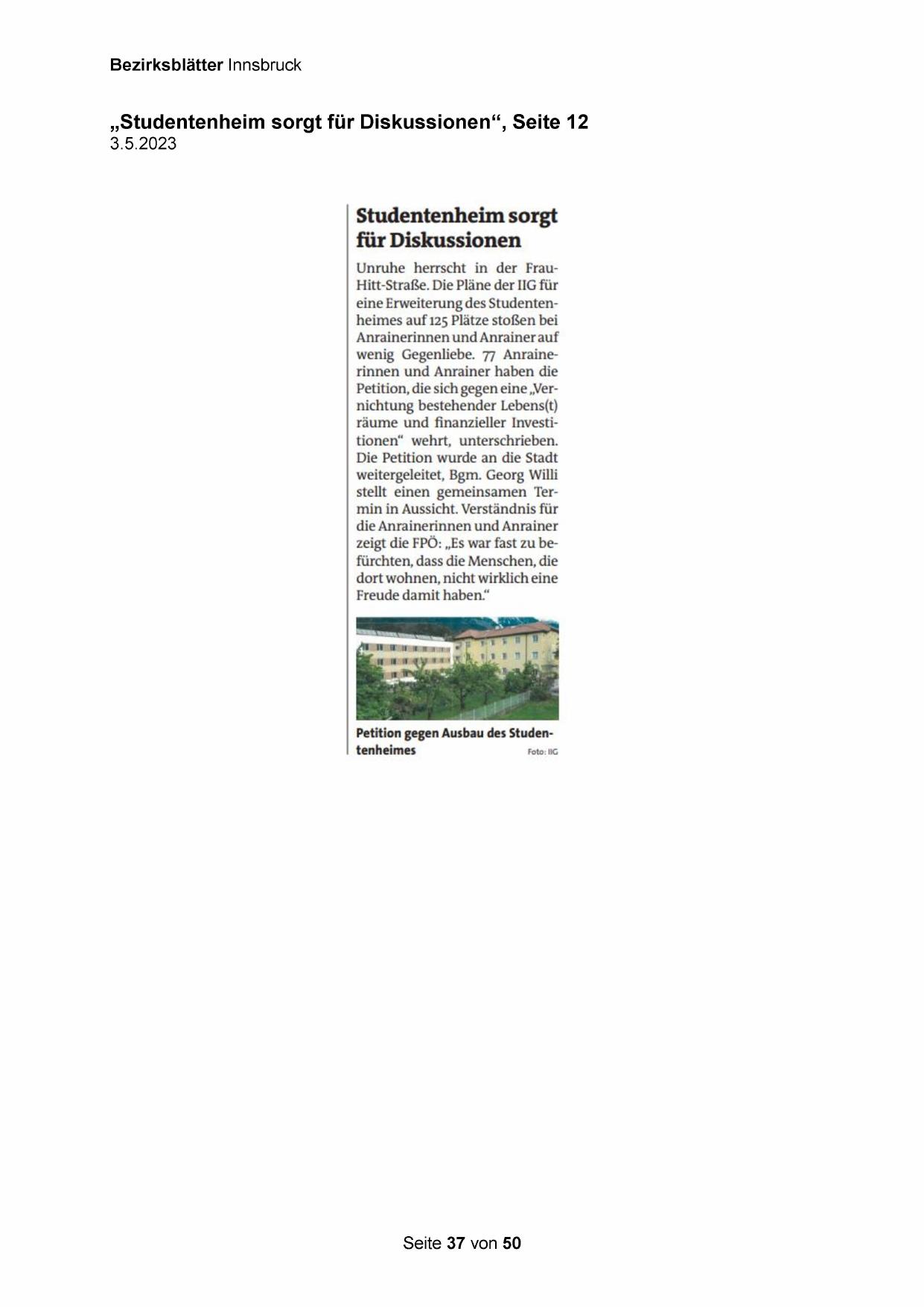 „Studentenheim sorgt für Diskussionen“, Seite 12