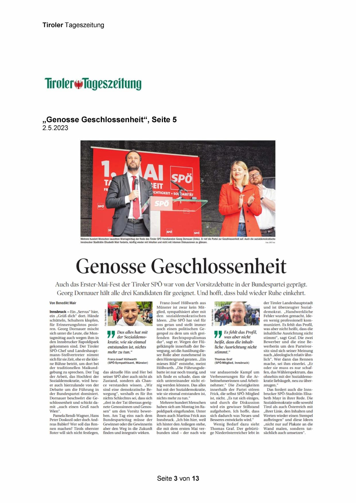 Auch das Erster-Mai-Fest der Tiroler SPÖ war von der Vorsitzdebatte in der Bundespartei geprägt.