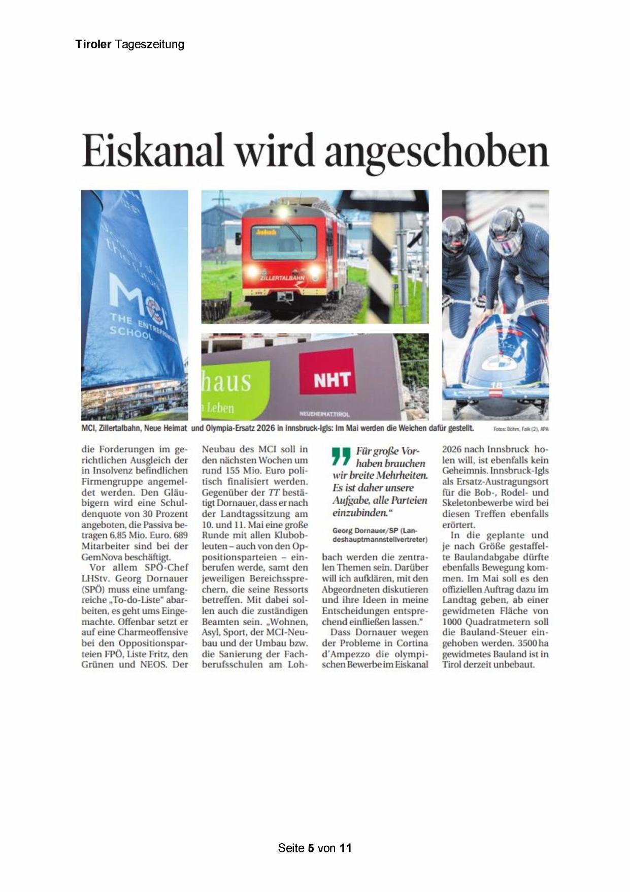 MCI, Zillertalbahn, Neue Heimat und Olympia-Ersatz 2026 in Innsbruck-Igis: Im Mai werden die Weichen